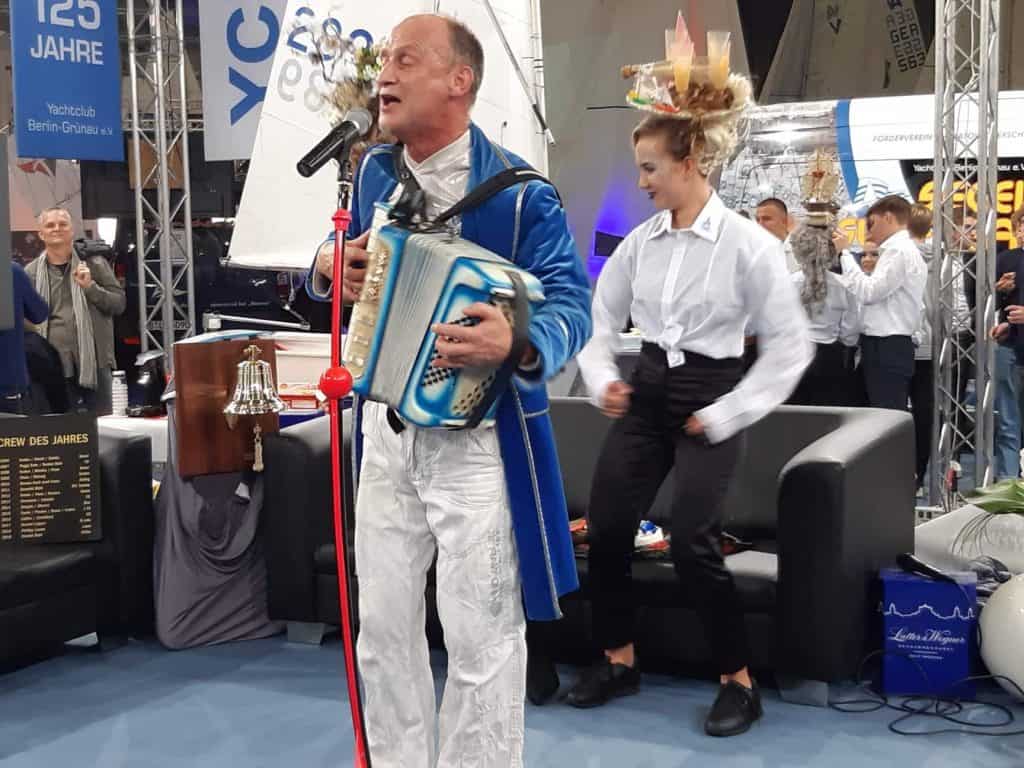 Ein imposanter Messestand von 20 x 20 m, 6 Boote vom Opti bis zur J70, Damen mit atemberaubenden Frisuren, die die Blicke nur so auf sich zogen, gute Laune mit Remmi von Demmi, Sekt, delikate Häppchen, Pfannkuchen, Geburtstagstorte …… und und und.