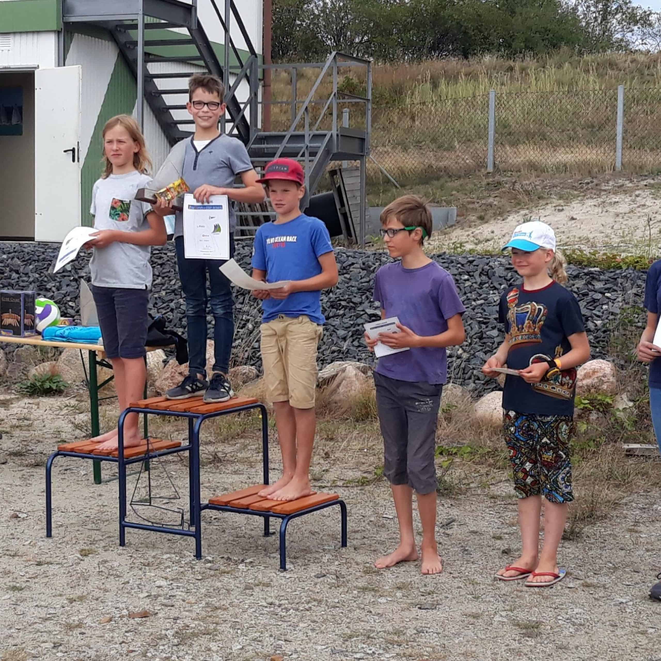 Am Samstag war es nicht so schönes Segelwetter. Bei drehenden Winden und viel Regen haben wir nach 6 Stunden auf dem Wasser zwei Wettfahrten mit den 20 Teilnehmern (Corona-Vorgabe) geschafft. Am Ende des Tages waren Jasper, Antonia und ich unter den ersten 5. Abends, nach der PizzaParty haben dann viele Kinder zusammen Beachvolleyball gespielt und sich dabei kennengelernt. Bis nach Sonnenuntergang waren wir noch baden und windsurfen.