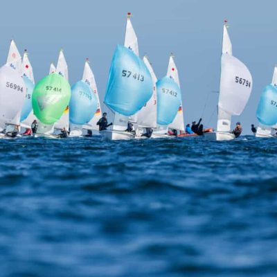Einsegeln. Das heißt man musste um 9 Uhr rausfahren. Aber es waren noch zwei weitere Stunden Startverschiebung. Auf dem Wasser sind wir nach den geplanten drei Rennen reingefahren.