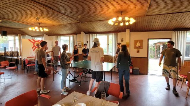 Am Samstag war der erste Start um 11 Uhr. Es war nicht besonders viel Wind, aber dennoch gut segelbar. Zum Glück sind wir von Regen und Gewitter verschont geblieben und haben so bei Sonnenschein 3 Wettfahrten geschafft. Nach den Wettfahrten hat beim SVR eine kleine Party stattgefunden. Es gab leckeres Essen und Getränke. Danach haben wir alle gemeinsam Tischtennis gespielt und hatten viel Spaß.