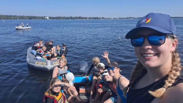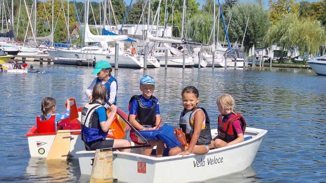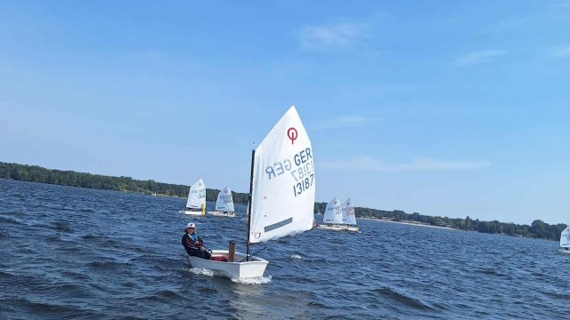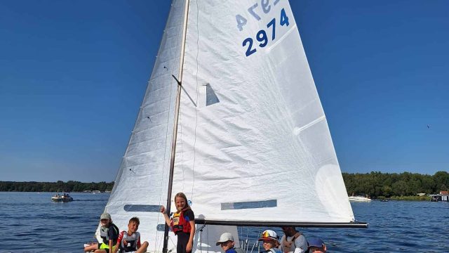 Am Mittwoch Vormittag sind wir mindestens über die Hälfte des Müggelsees gefahren, alle mussten hinter dem Motorboot her fahren und bei dem Kommando „Wende“ mussten alle eine Wende fahren. Wir sind heute wenig gehalst, weil wir das alle schon so gut können. Das Mittagessen hat gut geschmeckt, richtig gut. Am liebsten hätten wir das morgen nochmal. Es gab Reis mit Hähnchen in Sauce! Viele Teller wurde leer gefuttert! Das Wetter war sehr sonnig und warm. Der Wind hat ein wenig gedreht, aber er war sonst gut. Es gab Windstärke 2-3 auf dem Müggelsee und beim Verein nur Windstärke 1-2. Am Nachmittag haben wir mit 3 Booten geübt, am Keksboot langsam anzulegen. Auf dem Tauschboot wechselten wir uns dann immer ab und schauten den anderen beim segeln zu. Am Ende des Tages sprangen viele vom Motorboot und schwammen zum Segelverein. Das war ein sehr schöner Tag! (Eliane – Opti Anfänger)