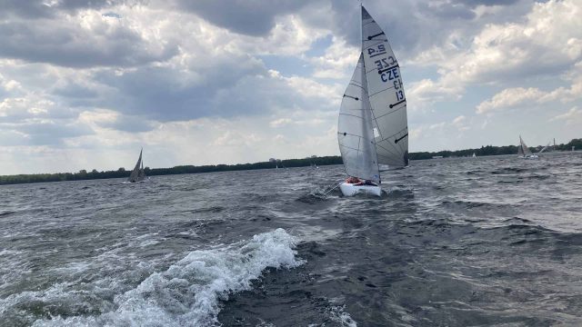 Am Sonntag, dem dritten Wettfahrttag, gab es dann zum Abschluss des Berlin-Cups 2025 nochmals andere Bedingungen. Bei bis zu 20 Knoten Wind aus westlicher Richtung mit der berühmten Müggelseewelle fanden noch drei Wettfahrten statt. So konnten alle 11 ausgeschriebenen Wettfahrten ausgesegelt werden, und es war für jeden etwas dabei.