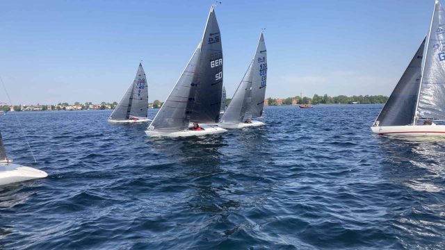 Ab Donnerstagnachmittag herrschte reges Treiben auf dem Gelände des YCBG. Der Freitag begann mit der gewohnten Hektik aus Anmeldung, Aufriggen, Einkranen, Trailer parken und dem Skippers Meeting. Pünktlich um 11 Uhr begann die Aktion auf dem Wasser mit dem ersten Ankündigungssignal des Tages.