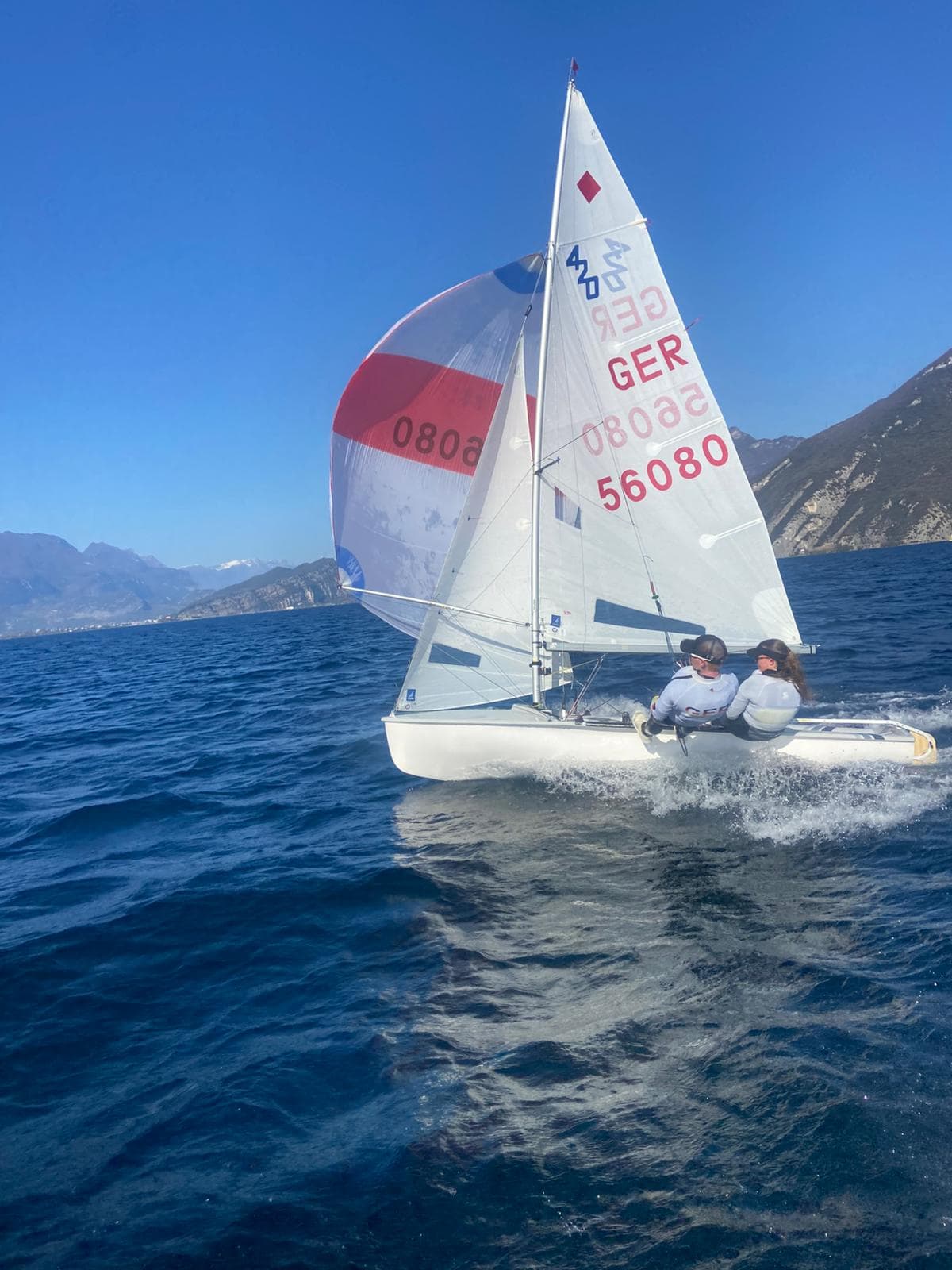Zum Start in die Segelsaison sind zwei 420er-Teams vom YCBG in der vergangenen Woche gemeinsam mit dem Landestrainer und fünf weiteren Booten aus anderen Berliner Vereinen in ein Trainingslager am Gardasee gefahren. Vom YCBG waren Nelly und Floriene und Antonia und Sander dabei.